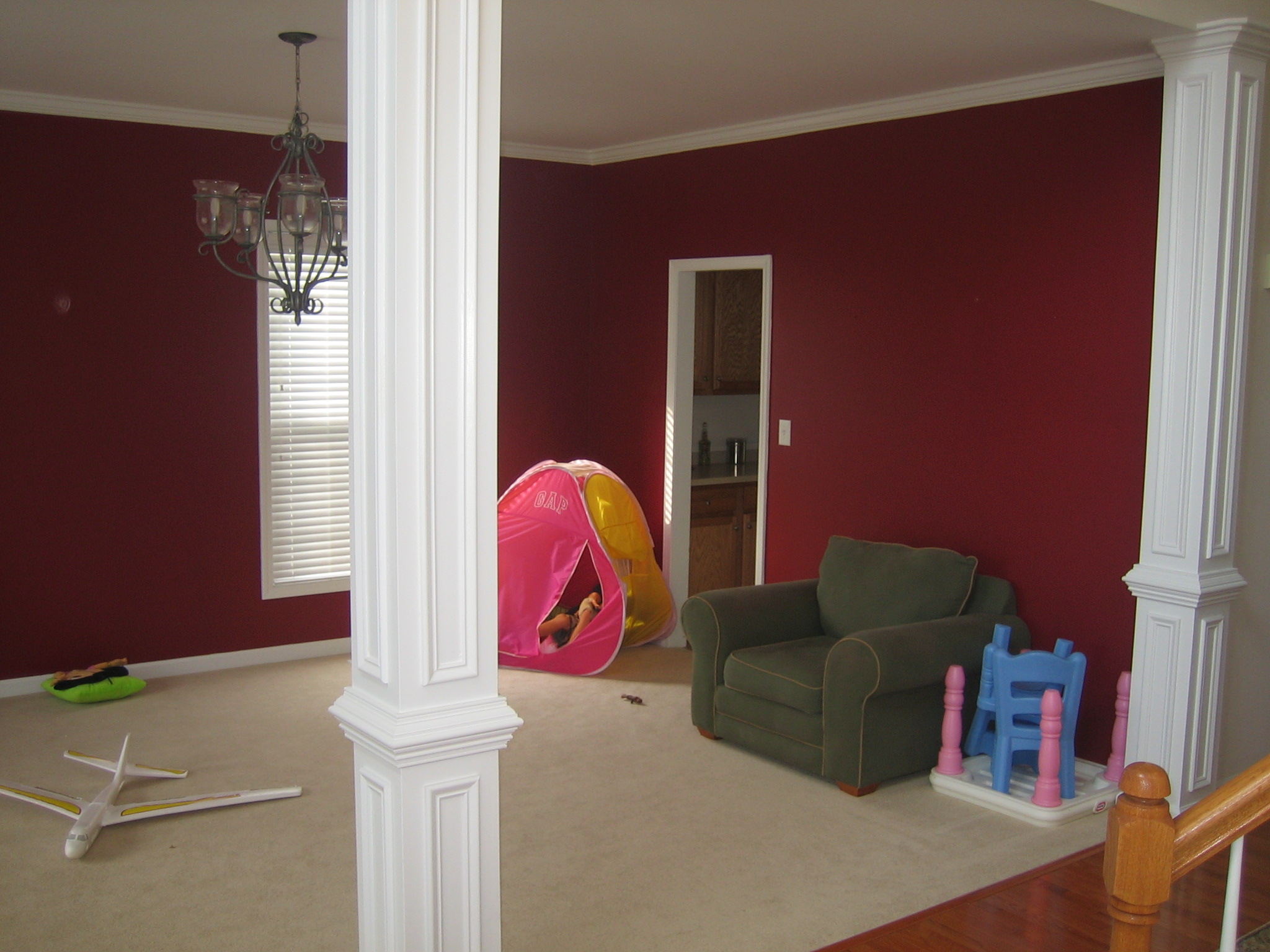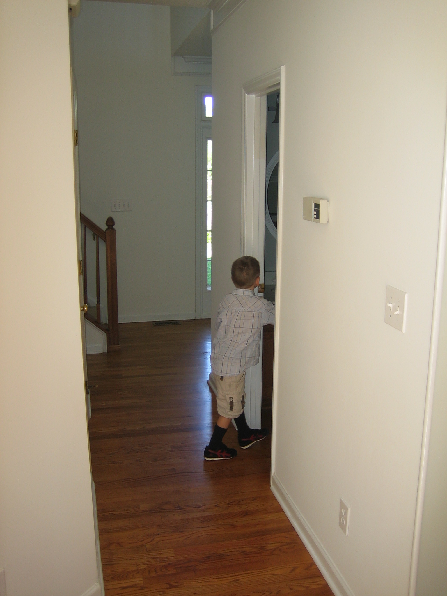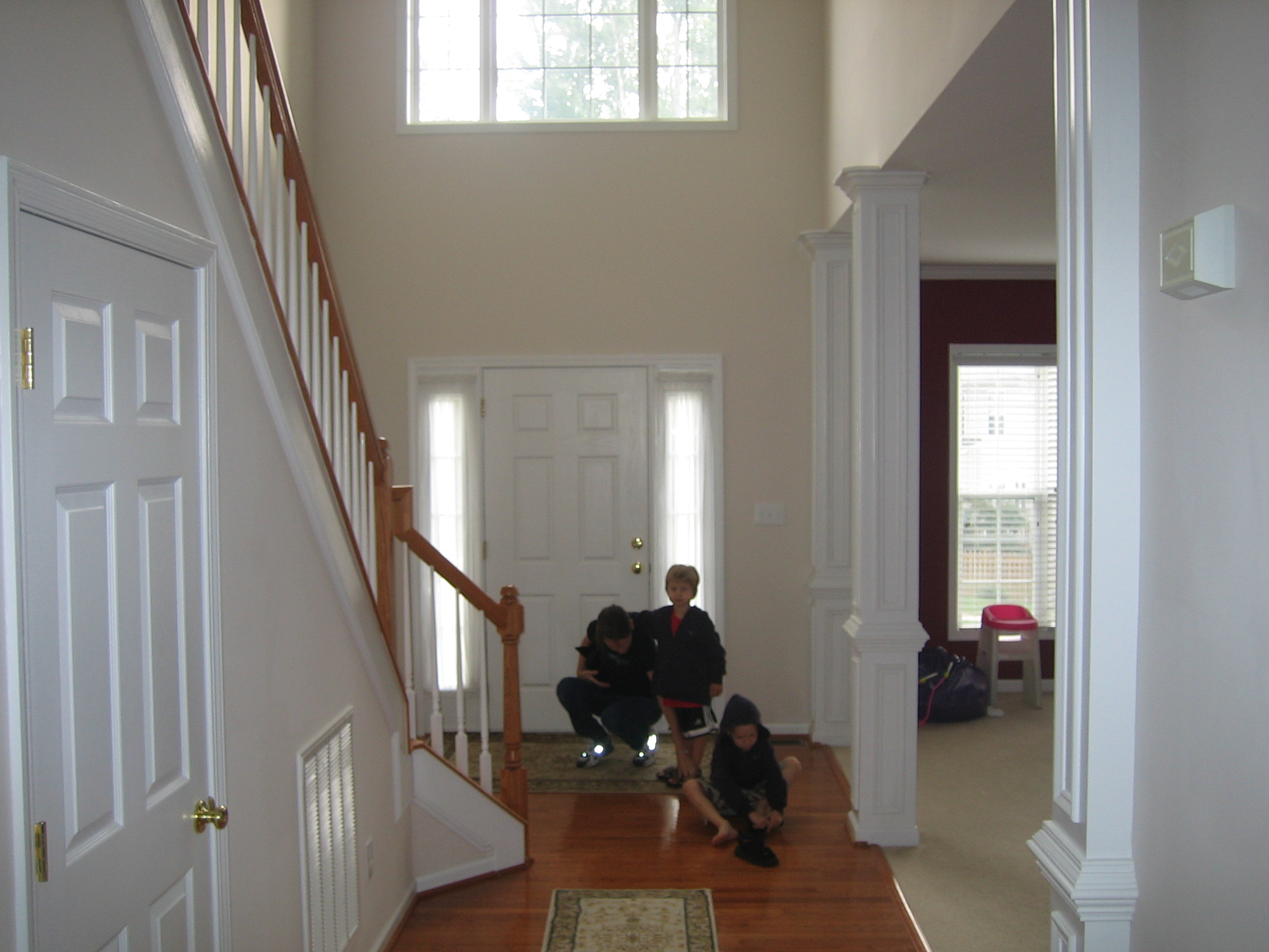closet rakt fram, lekrum och trappan ner till entren.